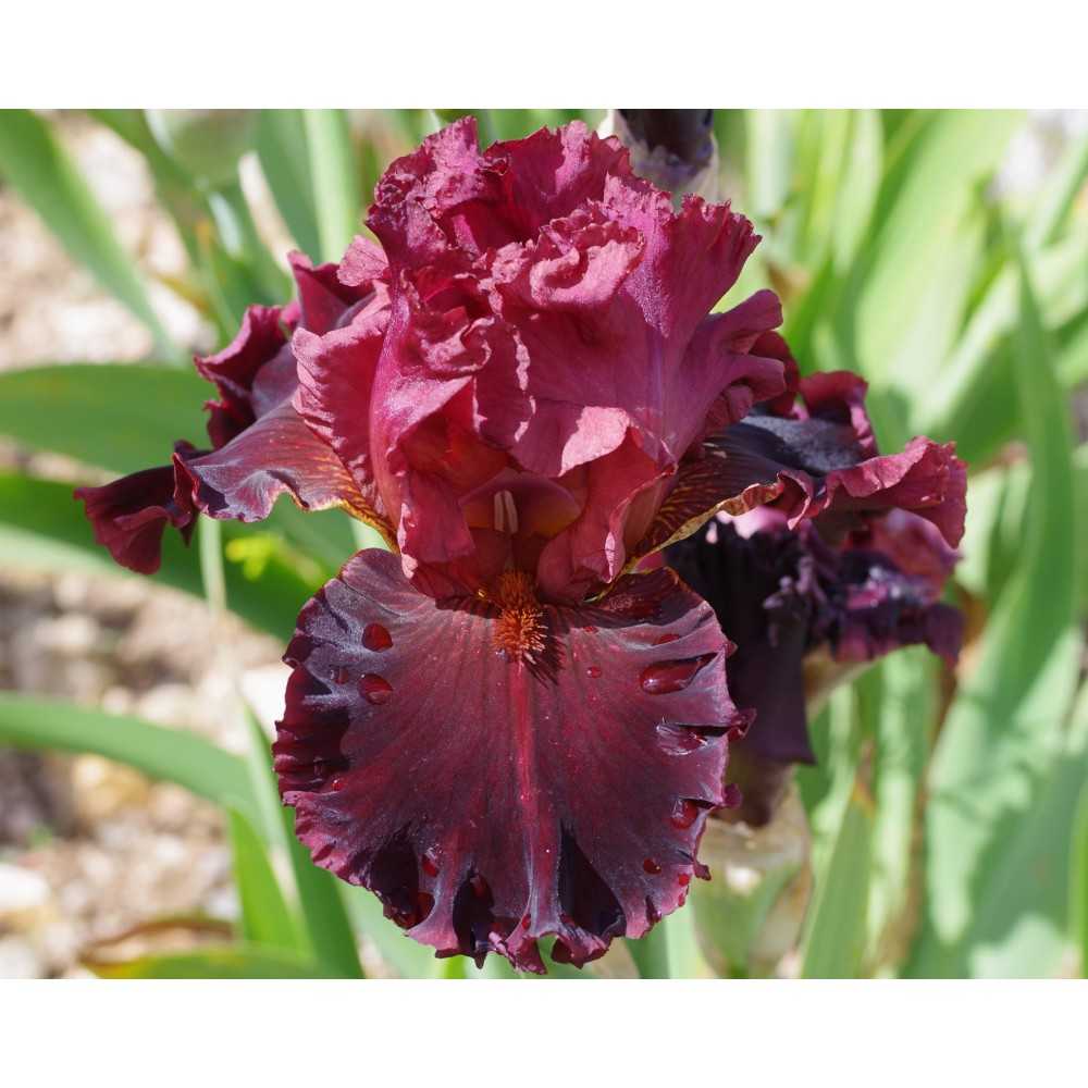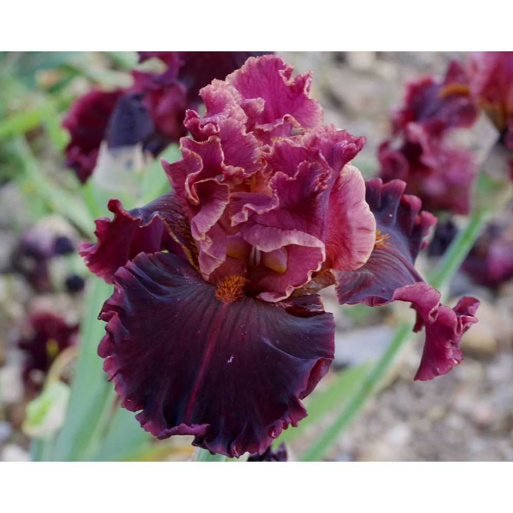 Si je devais choisir mon préféré parmi mes créations 2018 ce serait sans doute celui-ci. Voici bien un exceptionnel rouge 2 tons. Sépales rouge brun moyen s’éclaircissant un peu dans le temps, sépales rouge Bourgogne sombre aux bords plus clairs. Forme et branchement exceptionnels, 8 boutons en moyenne. Barbe marron moyen. (semis 06 33 A).