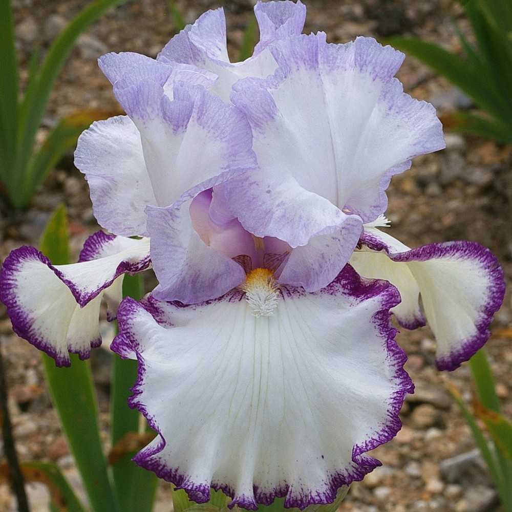 Subtle, delicate and beautiful! White standards with a light lavender plicata-type border. Pure white falls with a fine, bright purple edging. Yellow beards with white ends. Splendid stalks with 8 buds on average. One of our favourites among the foreign introductions of 2016.