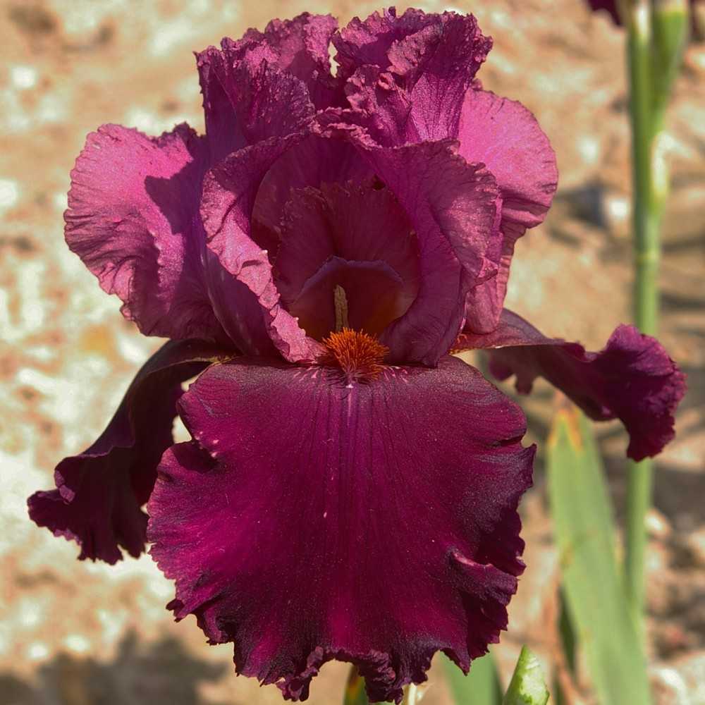 Rosso lampone medio su bordeaux di aspetto vellutato. Barba ruggine. Fiori un poco convessi dai bordi delicatamente increspati. Una tinta molto rara che costituisce un nuovo approccio del rosso.